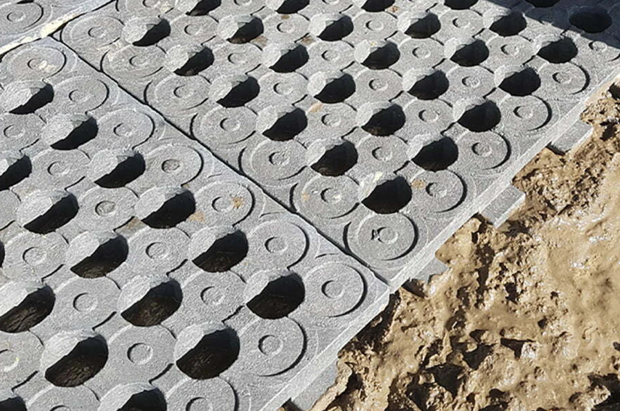 Podloga nudi životinjama udobnost tokom stajanja na otvorenom ili lako kretanje poljoprivrednim mašinama ili drugih teških vozila. Ploče se lako montiraju i demontiraju.