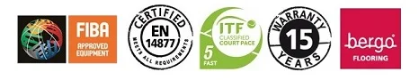 Ove podloge garantuju pravilan odskok lopte, sigurnost i prijatan osećaj tokom igre, dok smanjuju klizanje i povećavaju kontrolu pokreta. FIBA i ITF sertifikati potvrđuju kvalitet, čineći Bergo Ultimate idealnim izborom za profesionalne sportske centre, škole, ali i za svakodnevnu igru u dvorištu.
